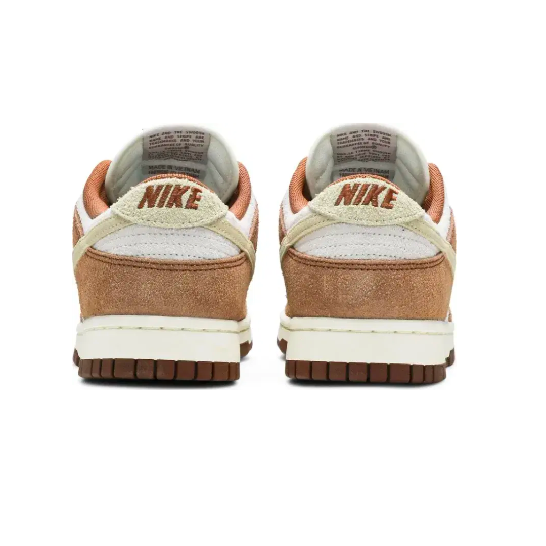 The Nike Dunk Low Premium ‘Medium Curry’ features a sophisticated color palette that combines earthy tones with premium materials. The upper is crafted from high-quality suede, giving it a luxurious feel and a distinctive look. The ‘Medium Curry’ hue dominates the design, complemented by white accents on the Swoosh, laces, and midsole. This harmonious blend of colors ensures that the sneaker stands out while maintaining a versatile appeal.