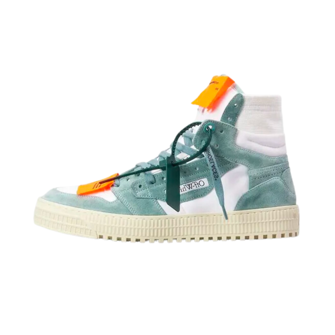 The Off White 3.0 Off Court suede canvas sneakers are a blend of urban style and premium craftsmanship. Designed for those who appreciate both fashion and function, these sneakers represent the unique aesthetic of the Off White brand. Constructed from top-quality suede and canvas, the sneakers are as durable as they are stylish. The distinctive Off White branding, along with the signature tags and zip tie, add a touch of modern flair to the classic silhouette. The high-top design provides added support, making them suitable for various activities.
