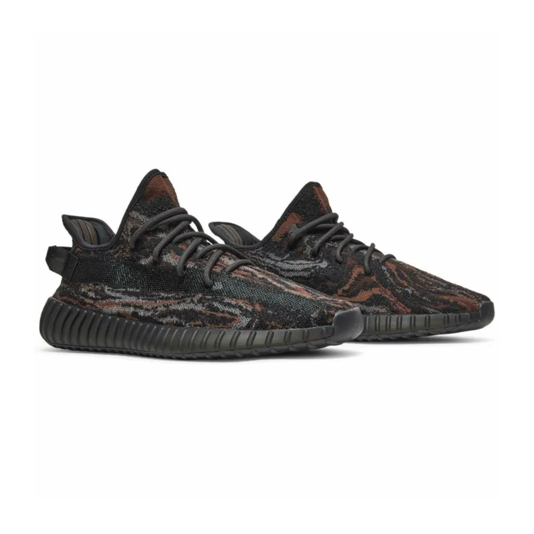 The ‘MX Rock’ variant of the Yeezy Boost 350 V2 features a distinct marbled pattern, blending shades of black, grey, and brown. This intricate design sets it apart from previous models, offering a fresh and contemporary look. The Primeknit upper ensures a snug yet flexible fit, adapting seamlessly to the wearer’s foot while providing optimal breathability.